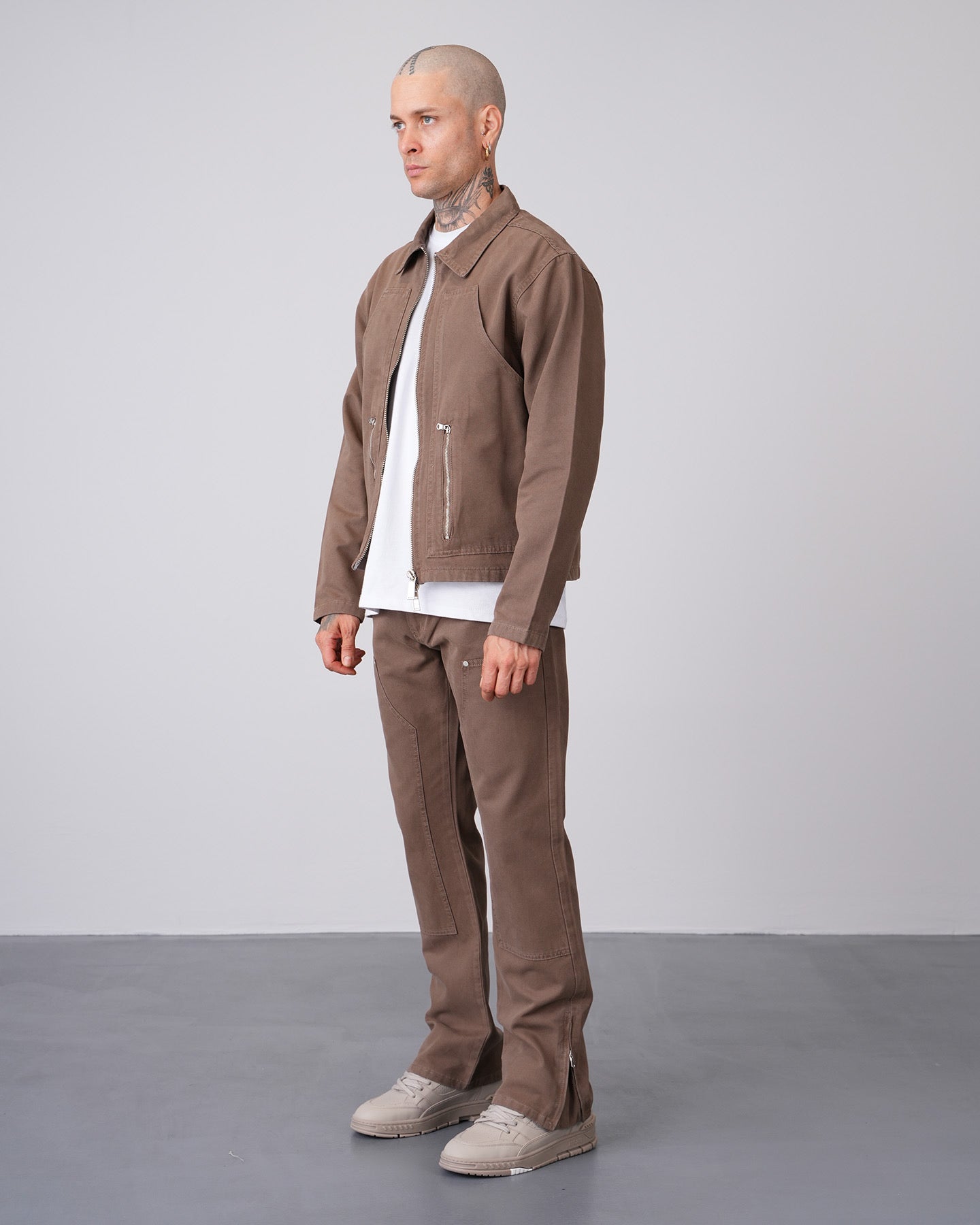 L’ensemble « Vision » en jean marron revisite les codes du streetwear avec une touche utilitaire. Sa veste zippée à poches pratiques et son pantalon cargo à multiples rangements offrent un look structuré et fonctionnel. Robuste, tendance et confortable, c’est la tenue parfaite pour un style urbain maîtrisé.