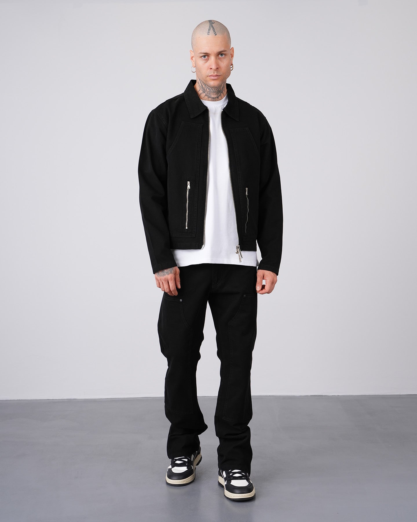 L’ensemble « Vision » en denim noir impose un style affirmé et moderne. Composé d’une veste zippée et d’un pantalon à poches multiples, il combine parfaitement confort, fonctionnalité et esthétique urbaine. Sa teinte noire intemporelle et ses détails métalliques en font un indispensable du dressing streetwear.